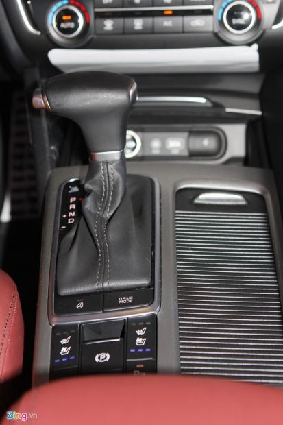 Cần số bọc da với các đường viền thiết kế như trên những mẫu xe cao cấp. Các chế độ lái và nút bấm phanh tay điện tử cũng được tích hợp.