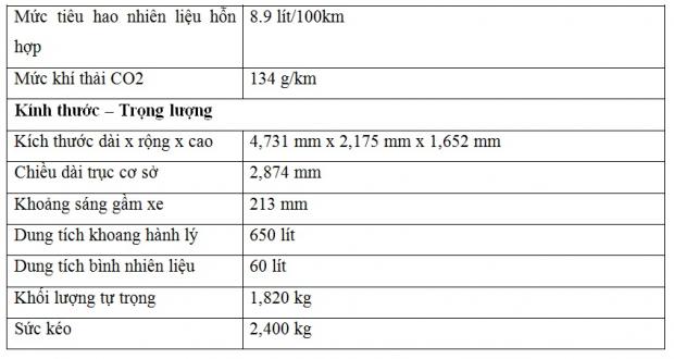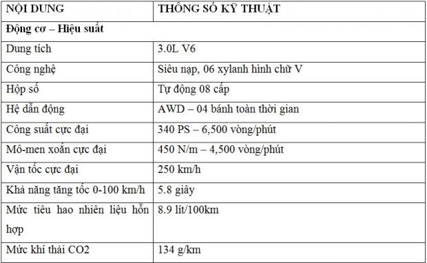 Bảng thông số kĩ thuật của Jaguar F-Pace