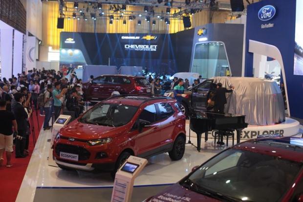 Những mẫu xe được chờ đợi như Ford Explorer, Toyota Fortuner 2017... vẫn đang được phủ bạt kín.