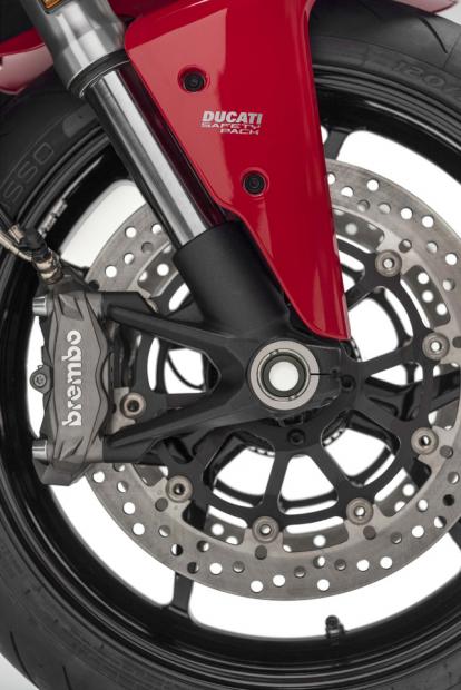 Dù ở phiên bản nào, Ducati SuperSport 2017 cũng đi kèm Brembo. Phanh đồng hành với vành 17 inch và lốp Pirelli Diablo Rosso III có kích thước 120/70 ZR17 trước và 180/55 ZR17 sau. Thêm vào đó là hệ thống chống bó cứng phanh ABS và kiểm soát lực bám 8 chế độ tiêu chuẩn. Riêng Ducati SuperSport S 2017 có thêm tính năng sang số nhanh tiêu chuẩn.