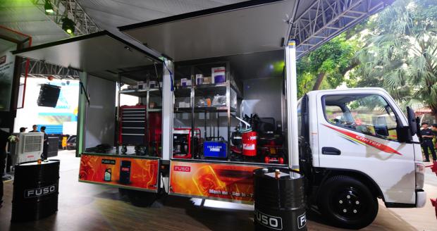 Năm nay, FUSO đem đến một chiếc Canter chuyên phục vụ việc sửa chữa lưu động hoàn toàn mới. Với thiết kế thùng xe chuyên dùng, được trang bị dụng cụ chẩn đoán, phụ tùng chính hãng, dầu nhớt chính hãng.