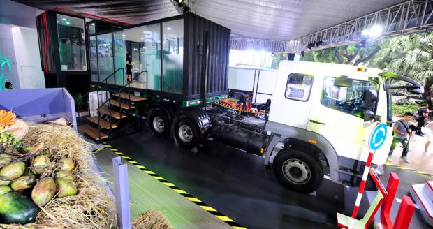 Ngay tại triển lãm, khách hàng còn có cơ hội được tham quan xe tải nặng Fighter FJ 24 tấn mạnh mẽ vượt đèo dốc, chiếc xe được trang trí với chức năng chuyên chở nông sản, hàng hóa đi khắp mọi miền đất nước.