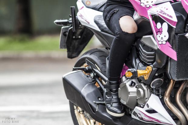 Cô gái 9X trông khá năng động lúc đi chơi với chiếc mô tô phân khối lớn Kawasaki Z800.