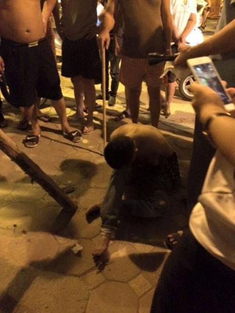 Cho rằng, đây là hung thủ gây ra vết thương cho người lái xe để cướp của, nhiều người đã hô hoán nhau dùng các vật dụng thô sơ để cùng truy đuổi.
