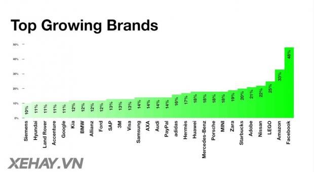 Thương hiệu Hàn Quốc này cũng vươn lên vị trí thứ 6 trong top 10 thương hiệu ô tô toàn cầu, vượt qua Audi, Volkswagen, Nissan, Porsche và là hãng xe đứng thứ 4 về giá trị thương hiệu.