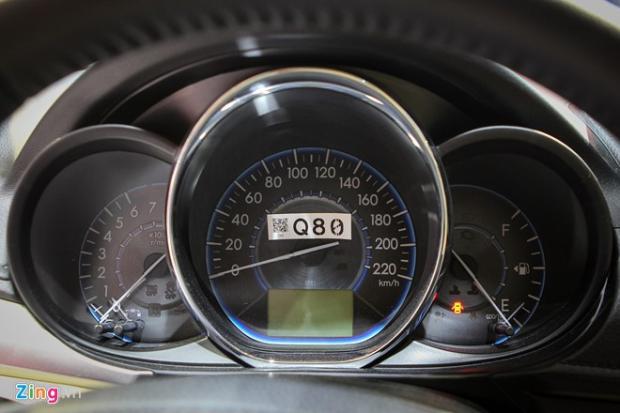 Nội thất của Vios 2016 cũng được giữ nguyên. Bảng táp lô bọc vật liệu mềm trên phiên bản cao cấp 1.5G. Cụm điều khiển hệ thống đa phương tiện đặt giữa bảng táp lô.