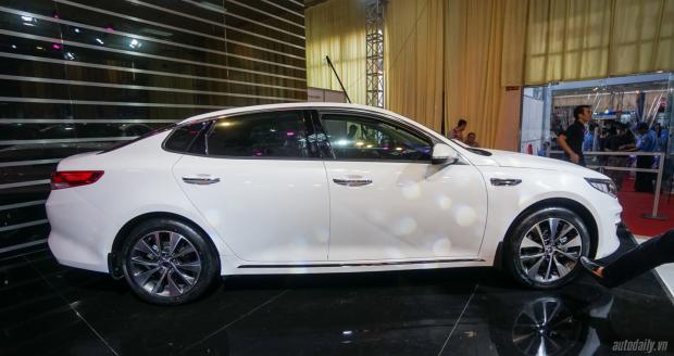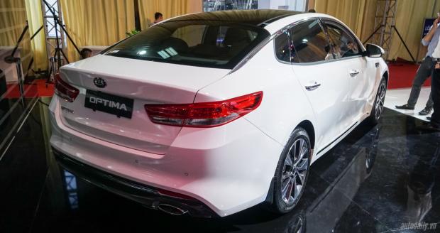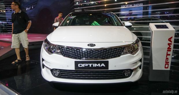 Mẫu sedan cỡ D là Kia Optima 2016 được Thaco Kia lắp ráp và phân phối chính thức ra mắt người tiêu dùng Việt với giá bán từ 915 triệu đồng cho bản 2.0 AT, 990 triệu đồng cho bản 2.0L ATH và 1,045 tỷ đồng cho bản 2.4 GT Line.