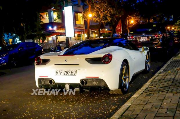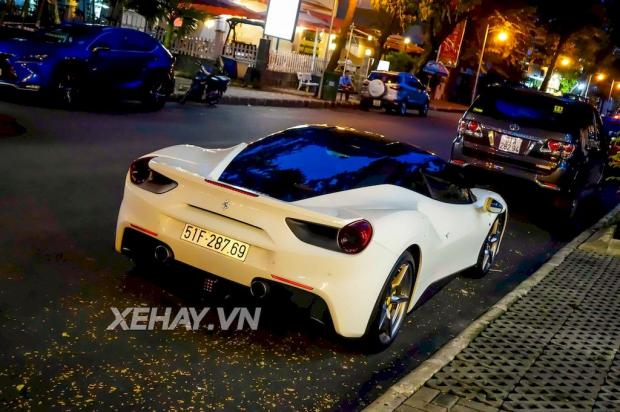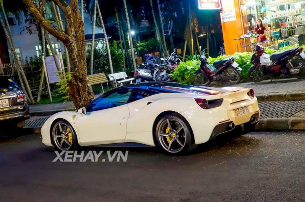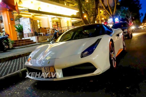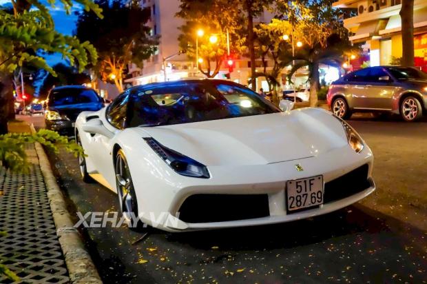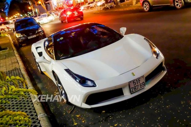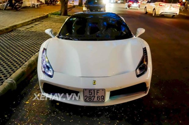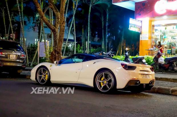 Không lâu sau khi sở hữu siêu xe Lamborghini Huracan và Rolls-Royce Wraith, doanh nhân Nguyễn Quốc Cường lại đưa thêm chiếc Ferrari 488 GTB màu trắng về garage.
