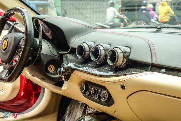 Nội thất F12 rất khác biệt so với những mẫu xe nguyên bản. Ghế ngồi được phối hai tông màu giữa màu be và nhung đỏ đồng phong cách với ngoại thất. Một số chi tiết được bọc sợi carbon như vô-lăng, bảng táp-lô, bệ trung tâm.