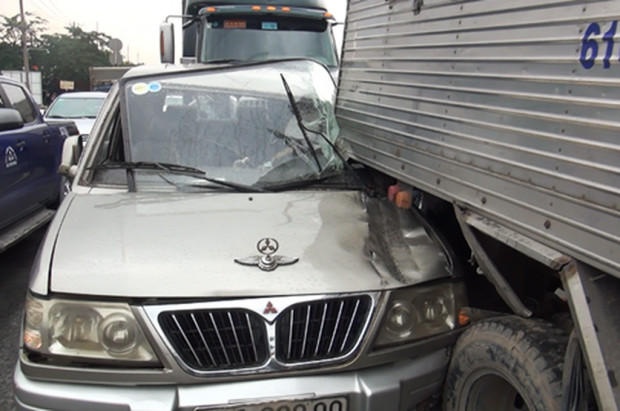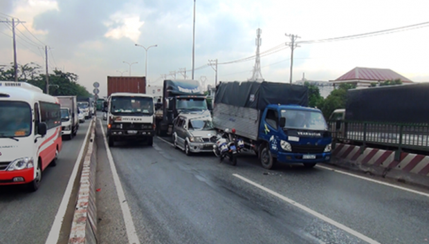 Thông tin ban đầu, khoảng 14h30 chiều cùng ngày, xe container mang BKS: 51C - 765.38 chạy trên quốc lộ 1 hướng từ An Lạc về ngã tư An Sương. Khi đang đổ dốc cầu Bình Thuận, quận Bình Tân thì bất ngờ húc mạnh vào đuôi ô tô 7 chỗ mang BKS: 51A - 628.00 chạy cùng chiều.