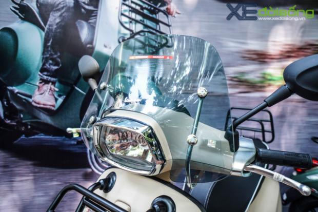 Vespa Sprint Adventure với 2 màu mới là cát sa mạc và xanh rêu mờ, cùng 3 phụ kiện lắp thêm đi kèm với 6 chi tiết đen mờ mới.