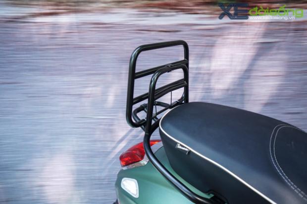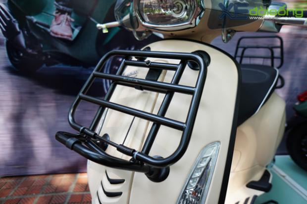 Chiếc Vespa Sprint Adventure có 3 phụ kiện lắp thêm màu đen mờ gồm: kính chắn gió, giá đeo trước và giá đeo sau
