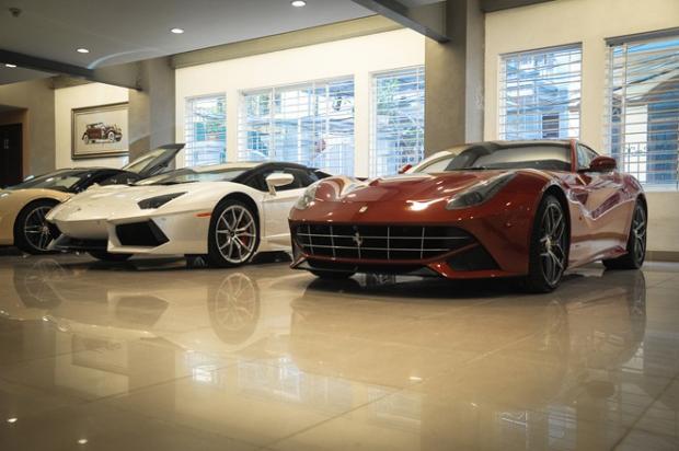 Thoạt nhìn, tưởng như đây là một showroom ở những quốc gia nổi tiếng về siêu xe như UAE, Mỹ hay Đức. Tuy nhiên, đây là hình ảnh được ghi lại bên trong một showroom kinh doanh ôtô trên đường Âu Cơ, quận Tây Hồ, Hà Nội. Xếp hàng đầu là siêu xe Ferrari 488 GTB với màu vàng nổi bật, sở hữu sức mạnh 670 mã lực. Đây là siêu xe về Việt Nam với số lượng khá nhiều thời gian gần đây.