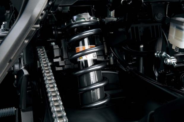 - Giảm xóc sau: Liên kết, lò xo trụ đơn, giảm chấn dầu