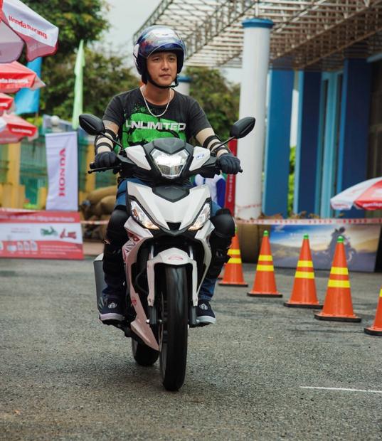 Chạy thử Honda Winner 150 được trang bị thiết bị bảo hộ tiêu chuẩn là một trong những hoạt động thú vị của chương trình.
