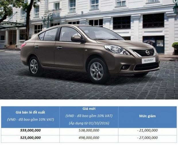 Theo mức giá mới áp dụng từ tháng 10/2016, phiên bản Nissan Sunny XL sẽ giảm từ 525 triệu xuống còn 498 triệu, phiên bản Sunny XV giảm từ 559 triệu xuống còn 538 triệu đồng.