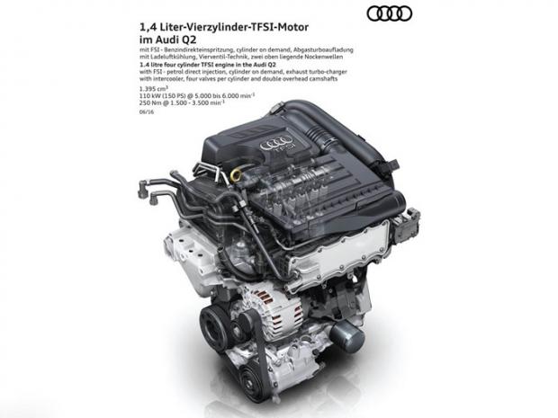 Động cơ I4 1.4L TFSIChiếc compact crossover Audi Q2 đã chính thức ra mắt tại Triển lãm ô tô quốc tế Geneva (Thụy Sĩ) hồi đầu tháng 03/2016. Audi Q2 được cho là hướng tới đối tượng khách hàng trẻ tại các đô thị, thực chất là hướng tới những người mong muốn một chiếc crossover hiệu sang như Audi nhưng chưa sẵn sàng chi tiền cho một chiếc Q3, với trang bị cao cấp và hệ dẫn động quattro. Chính vì thế xe có chiều dài cơ sở bằng với chiếc A3 dù tổng thể ngắn hơn, nghĩa là vẫn rộng rãi hơn một chiếc A3 Sportback trong khi chỉ thua Q3 không gian chở đồ.