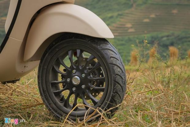 Vespa Sprint ABS Adventure vẫn sử dụng bộ vành hợp kim, đa chấu có thiết kế bắt mắt, tuy nhiên mang màu sơn đen mờ thay cho màu bạc trước đây. Lốp xe kích thước 110/70-12.