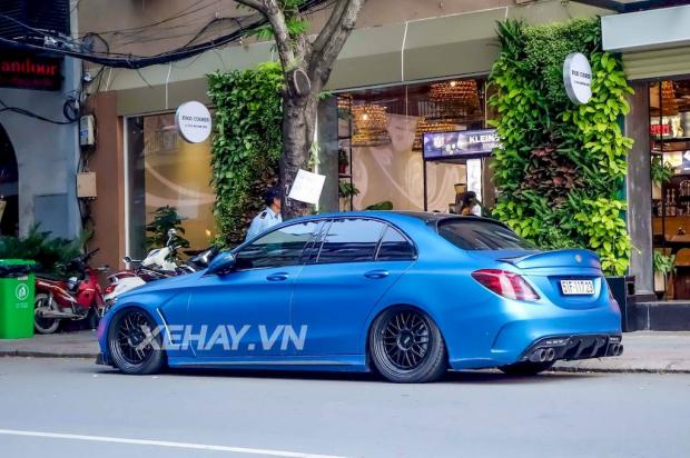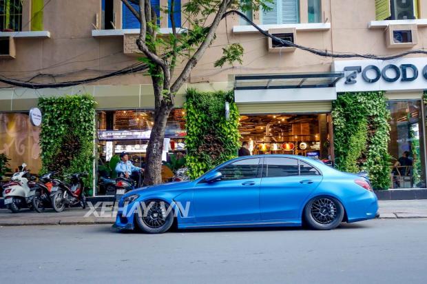 Toàn bộ thân xe và các chi tiết ngoại thất đều được sơn lại bằng màu sơn xanh mờ đẹp mắt. Có thể nói đây là chiếc C-Class hiếm hoi được độ “full bài”, so với một số chiếc khác chỉ độ nhẹ ở cản trước/sau và hốc gió bánh trước.