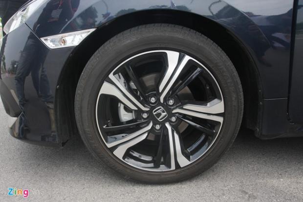 Civic mới sử dụng la-zăng hợp kim nhôm 17 inch thiết kế 5 chấu thể thao trong khi ở bản cũ là la-zăng 16 inch.