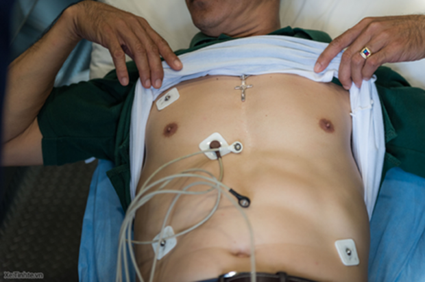 Máy theo dõi tình trạng của nạn nhân, có kết nối thời-gian-thực với trung tâm cấp cứu của FMP.