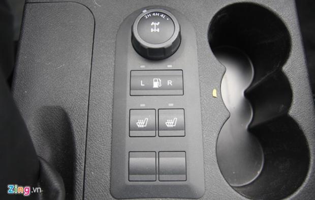 Mẫu bán tải hỗ trợ nút chuyển cầu điện tử, nút bấm mở 2 bình xăng đặt 2 bên thân xe.