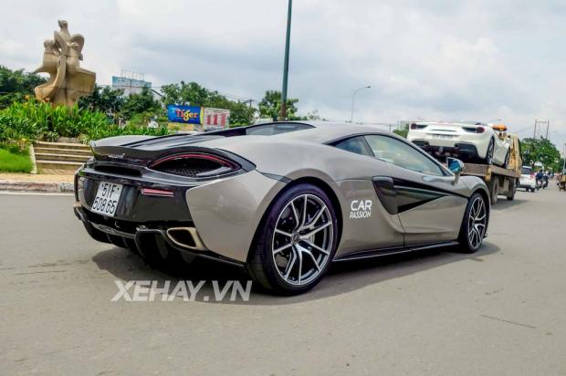 Trong khi đó, chiếc McLaren 570S đầu tiên ở Việt Nam được nhân viên showroom xe trực tiếp chạy về. Cảnh tưởng 2 siêu xe khủng cùng logo ‘Car & Passion’ nổi tiếng của Cường Đô La gây nên sự tò mò đối với người đi đường.