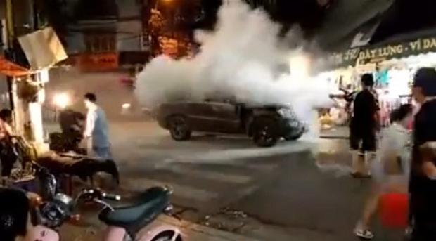 Theo sự chứng kiến của mọi người xung quanh, chiếc Mercedes GL450 màu đen đang di chuyển với tốc độ bình thường đến ngã tư Hàng Mã - Hàng Chiếu đột ngột dừng lại và bốc khói, chỉ vài giây sau lửa bùng lên từ khoang động cơ.