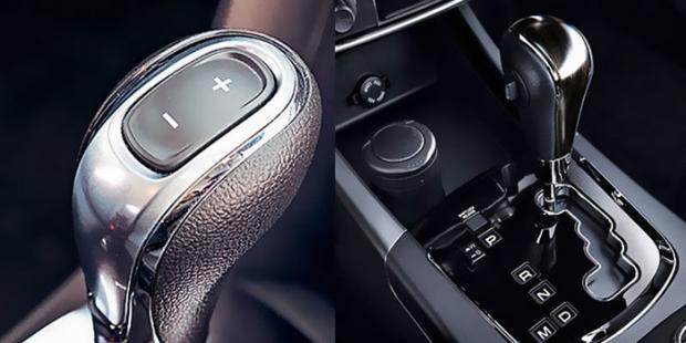 Hình trái, cần số có lẫy chuyển số bên trên. Kiểu thiết kế này có thể thấy trên Opel Mokka. Hình phải, cần số của SsangYong Actyon.