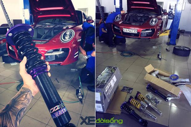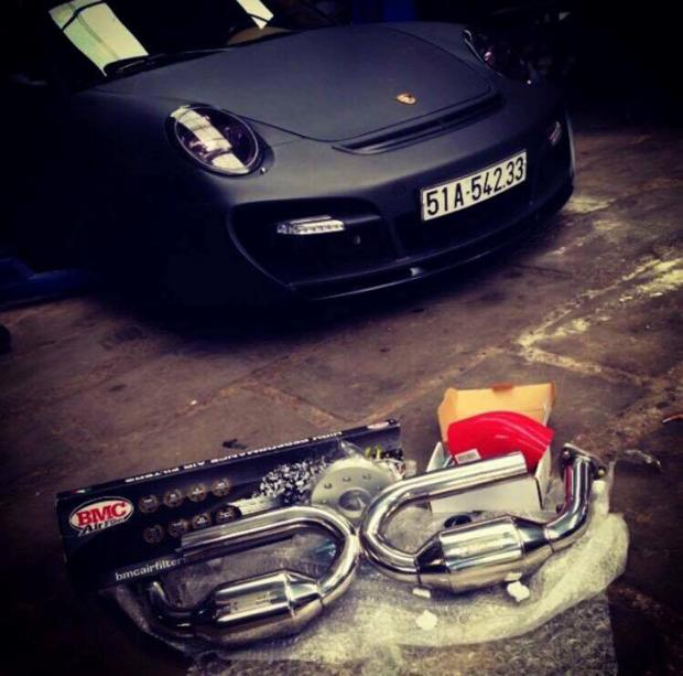 Trong phần nâng cấp ngoại thất, anh chọn bộ bodykit GTstreet của TechArt – hãng chuyên nâng cấp các dòng xe Porsche đình đám thế giới, cho chiếc 911 Carrera S của mình, cùng với ngoại thất hoàn thiện bằng màu xám nhám thì phần nội thất được nâng cấp toàn bộ chi tiết bằng chất liệu sợi carbon cao cấp, bộ mâm Performance Porsche đem lại một diện mạo thể thao nhưng vẫn giữ lại nét đặc trưng cổ điển của Porsche. Để làm cho chuẩn mực với bộ bodykit, chiếc xe được lắp thêm con đội bánh (spacer) trước 7mm và 18mm cho bánh sau, tăng thêm bề ngang trục trước và sau, đồng thời đem cho xe một diện mạo mạnh mẽ và giúp xe ổn định linh hoạt hơn ở những khúc cua. chiếc xe được sơn airbrush ngay ở nắp capô hình đầu lâu Skull, mang đậm chất chơiMột sự khác biệt mang đậm chất chơi khi lần đầu một chiếc Porsche 911 được sơn airbrush ngay ở nắp capô hình đầu lâu Skull lúc ẩn lúc hiện dưới ánh nắng Sài Gòn. Ban đầu hệ thống treo của xe được nâng cấp với bộ phuộc coilover của hãng KW nhưng do ko phù hợp với điều kiện đường xá Việt Nam. Sau đó, chiếc xe được điều chỉnh lại hệ thống treo với bộ phuộc khí nén từ D2 Racing giúp cải thiện đặc tính vận hành thể thao cho xe và phần ngoại thất, được hoàn thiện lại với nước sơn Đỏ Divired, mâm xe xám nhám. Ngoài ra, xe cũng được nâng cấp lại hệ thống ống xả cross pipecatalytic.