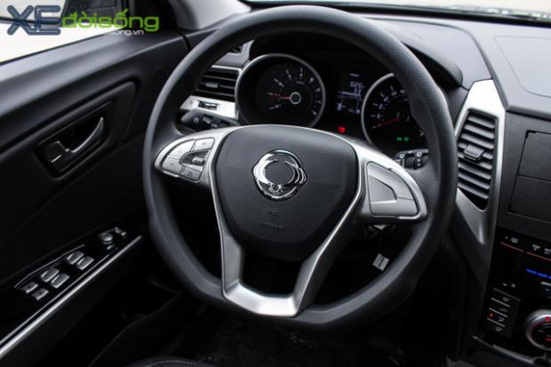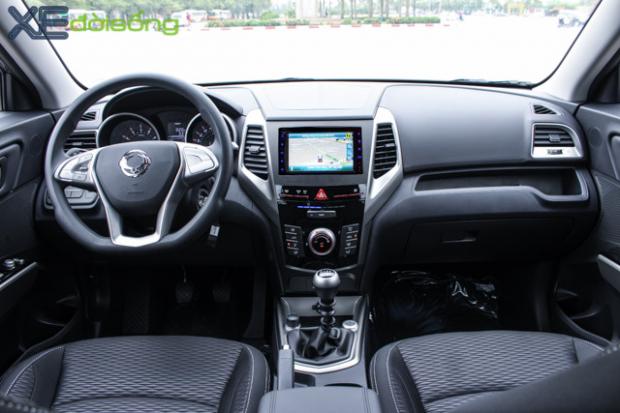 Bên trong, chất liệu nội thất vẫn là ghế nỉ, vô-lăng thiết kế chữ D nhưng số phím bấm bên trên đã giảm bớt so với bản số tự động. Đặc biệt ở phiên bản này, SsangYong AutoK đã cung cấp thêm màn hình trung tâm cảm ứng sử dụng phần mềm Vietmap. Bên cạnh việc hiển thị hệ thống giải trí thì màn hình này cũng tích hợp định vị và hiển thị camera lùi