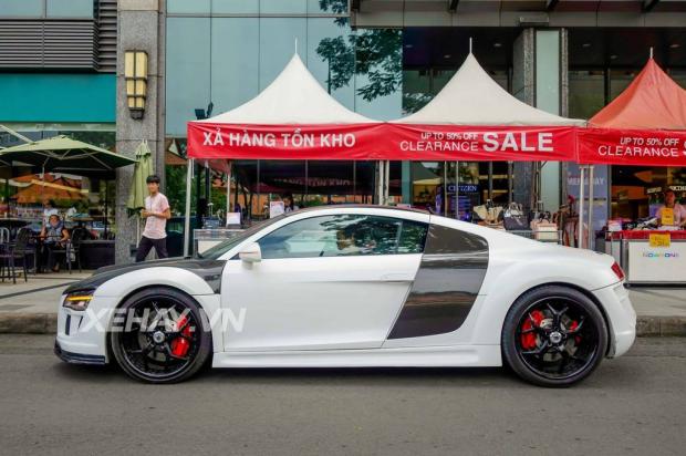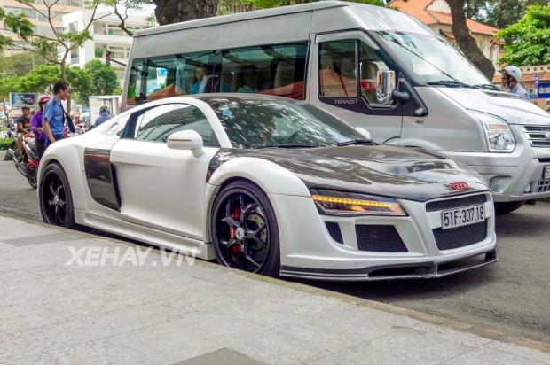 Vốn có mặt tại Sài Gòn vào trước năm 2012, chiếc R8 – có màu sơn zin là trắng, đã bán ra Hà Nội. Sau đó, xe được độ thêm vành 20 inch của hãng Asanti và màu sơn mờ có độ bóng.