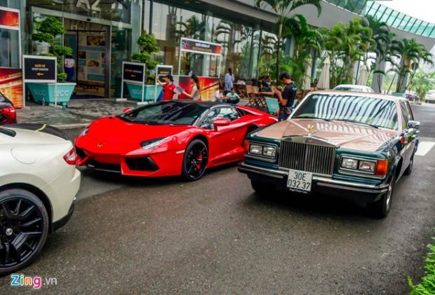 Rolls-Royce Phantom cổ điển với logo mạ vàng hàng hiếm cũng xuất hiện bên cạnh Lamborghini. Ảnh: TNTBros.