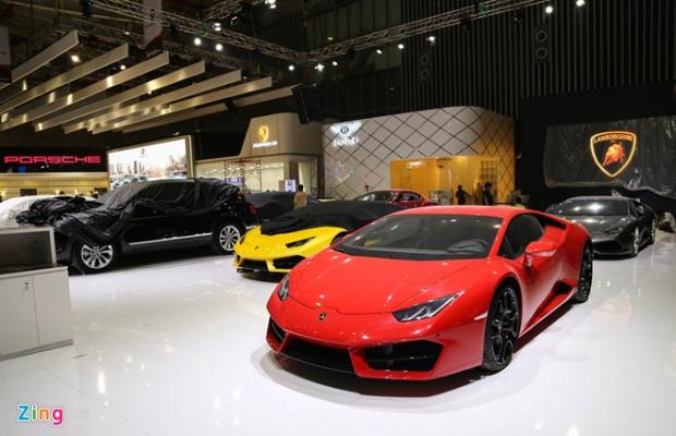 Gian hàng Lamborghini và Bentley nằm ngay cổng vào. Đây là gian hàng có nhiều siêu xe và xe siêu sang nhất triển lãm, dự kiến sẽ thu hút số đông người tham quan. Những mẫu xe hot nhất phải kể tới ba chiếc Lamborghini Huracan, trong đó có hai chiếc dẫn động cầu sau. Bentley Mulsanne, Bentley Bentayga và một số mẫu xe siêu sang hai cửa dòng Continental.