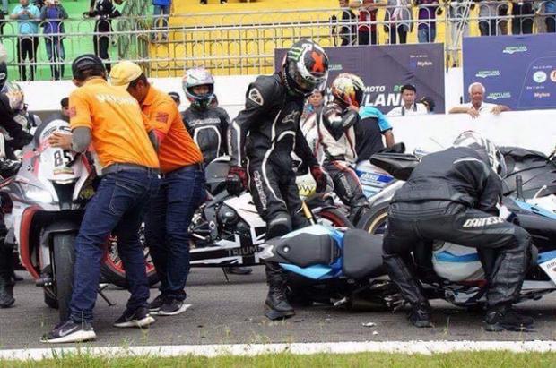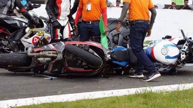 Theo đó, khi kết thúc vòng đua và các biker đều cho xe dừng lại ở vạch, thì một người điều khiển chiếc Kawasaki ZX-10R do không làm chủ được tốc độ đã tông mạnh vào phía đuôi BMW S1000RR, khiến cả hai xe ngã nhào. Vụ tai nạn khiến nhiều biker cùng nhiều người xem trên khán đài sợ hãi.