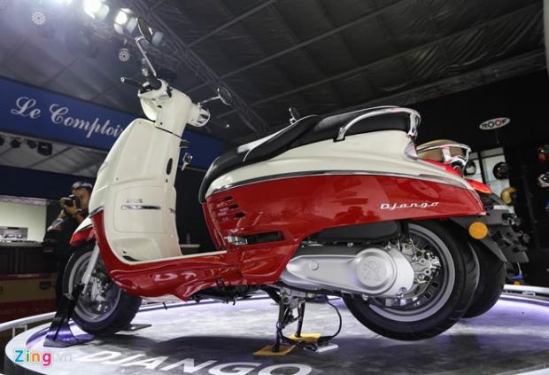 Đây là hình ảnh mẫu xe tay ga Peugeot Django trước giờ ra mắt chính thức thị trường Việt Nam. Hãng xe Pháp cung cấp rất nhiều màu sắc cũng như các phiên bản khác nhau. Mặc dù chưa công bố giá bán chính xác, đại diện hãng xác nhận mẫu xe này thuộc phân khúc xe tay ga cao cấp, mức giá từ 60 đến 80 triệu đồng tại Việt Nam.
