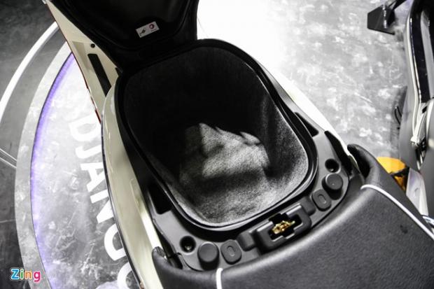 Bên dưới yên xe là cốp rộng, có thể bỏ được hai mũ bảo hiểm nửa đầu cùng vài vật dụng lặt vặt. Ngoài ra, bên trong còn có một cổng sạc điện thoại 12 volt khá tiện dụng, phù hợp với những người thích đi phượt đường dài mà không cần mang theo cục sạc dự phòng.