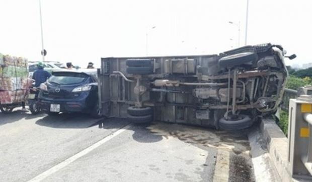 Hậu quả vụ tai nạn đã khiến cả 3 chiếc xe bị hư hỏng nặng. Chiếc xe tải bị lật quay ngang trên cầu theo hướng đi về trung tâm TP. Hà Nội. Dưới mặt cầu xăng dầu chảy tràn lẫn cùng với những mảnh vỡ của các phương tiện. Rất may những người có mặt trên cả 3 chiếc xe đều chỉ bị thương nhẹ. Vụ tai nạn đã gây ùn tắc tắc nghiêm trọng theo cả 2 hướng đi trên cầu.