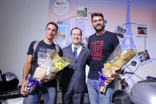 Khi chia sẻ với nhiều người dân tại các thành phố đã đi qua, đa số họ nghĩ rằng Ambroise và Samuel đã khá là liều lĩnh khi quyết định chinh phục quãng đường 12,000km Paris – Sài Gòn. Cùng với chiếc xe Django 125cc, đôi bạn trẻ đã đi qua 50 thành phố lớn các nước như Đức, Thụy Sĩ, Slovenia, Croatia, Bulgari, Thổ Nhĩ Kỳ, Ấn Độ, Myanma, Thái Lan... và Lào trước khi đến TpHCM.