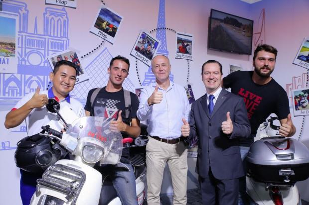 Nhân dịp này, Peugeot Scooters cũng hỗ trợ cặp đôi người Pháp để tiếp tục chuyến hành trình từ Sài Gòn ra Hà Nội như một lời cảm ơn về những cảm hứng đầy đam mê họ đã truyền đến mọi người của Peugeot Scooters.