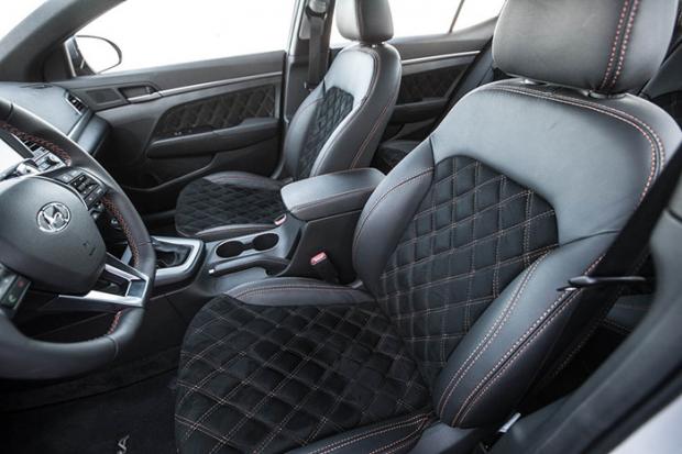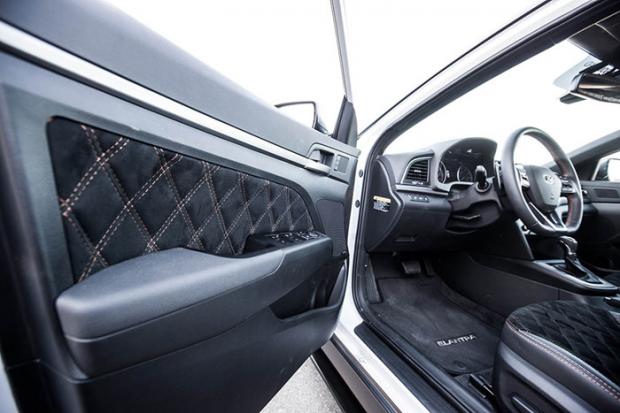 Bên trong xe, toàn bộ ghế ngồi và ốp cửa được bọc lại với các đường chỉ khâu tạo hình mạng kim cương.Hoàng Minh