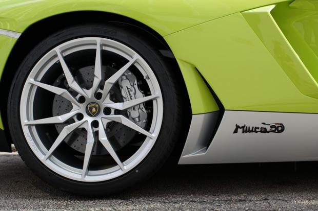 Chiếc Aventador Miura Homage duy nhất ở Hong Kong được khoác màu xanh lá Verde Scandal kết hợp với màu bạc mờ.