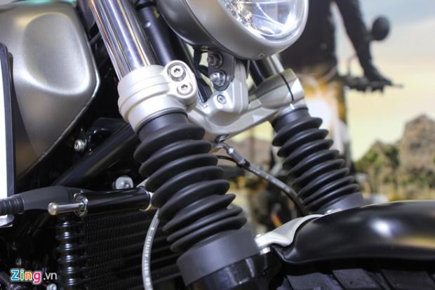 Xe sử dụng hệ thống giảm xóc trước ống lồng với vỏ cao su thay vì giảm xóc hành trình ngược như trên RnineT.