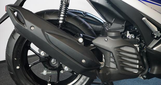 Yamaha NVX thể hiện dáng vẻ thể thao ở mọi góc nhìn, nhờ những đường cắt cẻ mạnh mẽ. Mâm xe kích thước 14 inch ở cả 2 bánh. Lốp sau có kích thước 140mm. Phanh ABS tích hợp ở bánh trước, trong khi phía sau là dạng tang trống.