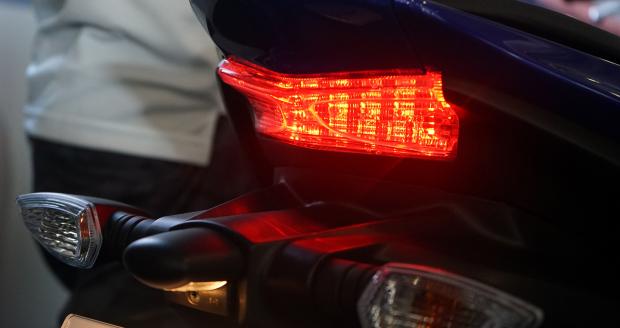 Đèn pha của Yamaha NVX lấy cảm hứng từ mẫu môtô YZF-R3, chiếu sáng bóng LED.