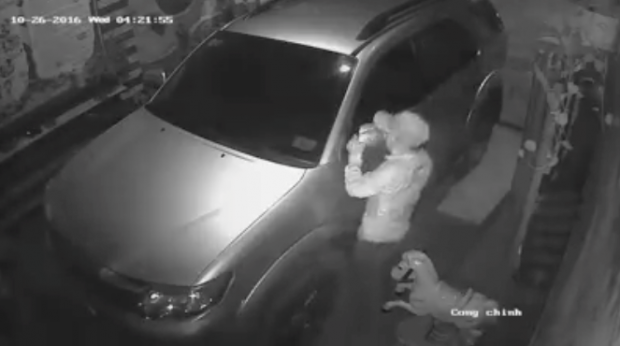 Thời điểm hơn 4 giờ sáng, chiếc Toyota Fortuner đỗ trước cửa nhà có gắn camera bị trộm vặt mất logo trước và 2 mặt gương chỉ trong chưa đến nửa phút. Hình ảnh tên trộm vặt mặt gương xe Toyota Fortuner nhân lúc rạng sáng. Ảnh chụp từ clip Mới đây, trên diễn đàn otofun, một thành viên đã up lên clip ghi lại quá trình tên trộm vặt mặt gương và logo trước của xe Toyota Fortuner đang đỗ trên một con phố ở Hà Nội. Điều gây ngạc nhiên cho người xem chính là tốc độ thực hiện của tên trộm rất nhanh và gọn. Chỉ trong chưa đầy nửa phút (hơn 20 giây), mặt 2 gương và logo trước đã bị bóc mất.