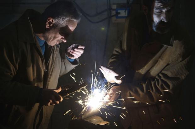 Một thành viên Quân đội Syria Tự do kiểm tra một quả rocket trong xưởng chế tạo vũ khí ở Aleppo vào ngày 9-9-2013 (Ảnh: Daily Sabah)