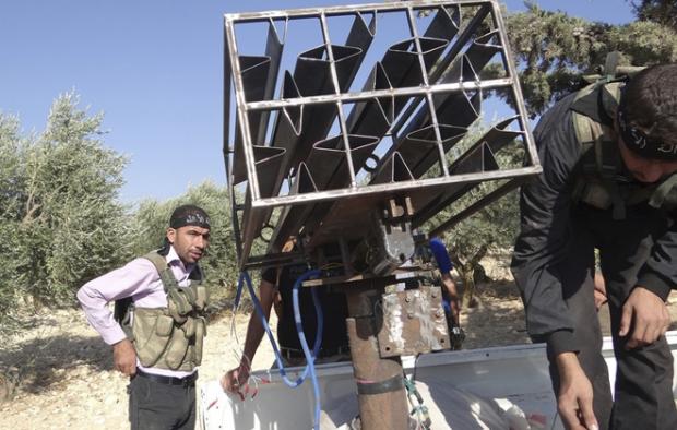 Các chiến binh Quân đội Syria Tự do chuẩn bị phóng rocket tự tạo về phía Quân đội Tổng thống Bashar al Assad ở Raqqa vào ngày 14-10-2013