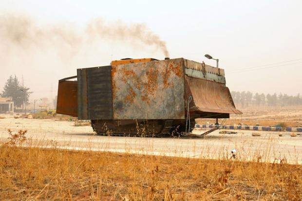 Một chiến xa 'công-nông' của Quân đội Syria Tự do đang di chuyển đến Dahiyat al Sad, phía Tây Aleppo vào ngày 28-10-2016 (Ảnh: Daily Sabah)