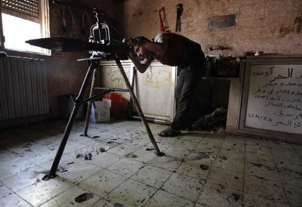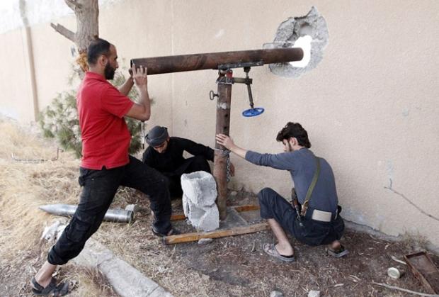 (Ảnh: Daily Sabah)Các chiến binh Quân đội Syria Tự do chuẩn bị phóng rocket tự tạo về phía Quân đội chính phủ ở thị trấn Mork vào ngày 16-5-2014 (Ảnh: Reuters)